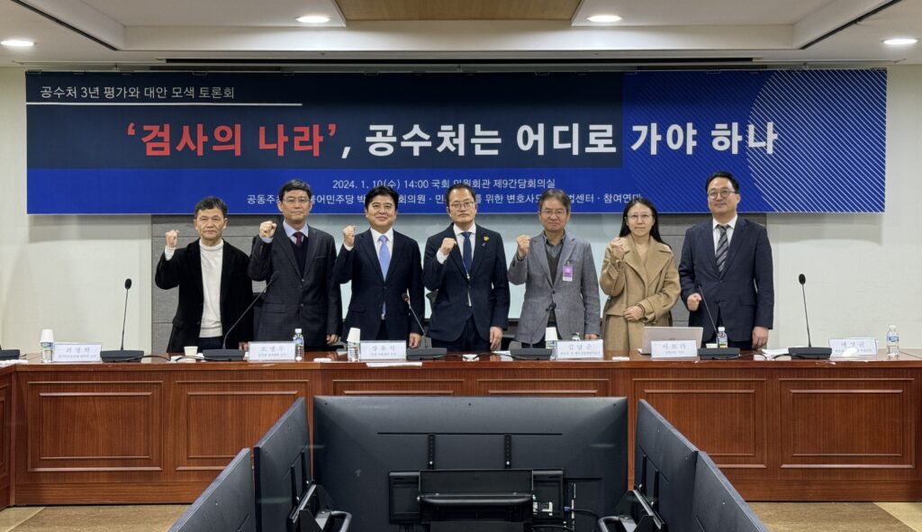 참여연대 · 민주사회를 위한 변호사모임 사법센터 · 박주민 더불어민주당 국회의원은 어제(1/10) 오후 2시, 국회의원회관 제9간담회의실에서 공수처의 지난 3년을 평가하고 대안을 모색하는 《‘검사의 나라’, 공수처는 어디로 가야 하나》 토론회를 개최했습니다. 장유식 민변 사법센터 소장이 좌장을 맡아 진행된 이번 토론회는 1기 공수처장 임기종료를 앞두고 공수처가 걸어온 길을 비판적으로 평가하고, ‘검사의 나라’에서 공수처가 처한 오늘의 현실과 내일의 발전 방향에 대해 심도깊은 토론을 진행하기 위해 마련된 자리입니다.
