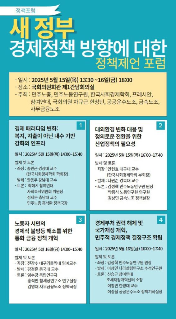 - 주최 : 민주노총, 민주노동연구원, 한국사회경제학회, 프레시안, 참여연대, 국회의원 차규근․한창민, 공공운수노조, 금속노조, 사무금융노조