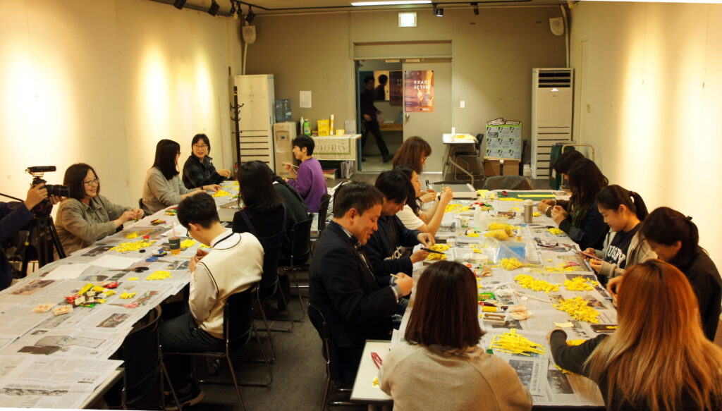 People’s Solidarity for Participatory Democracy(PSPD) has been operating the Seochon Yellow Ribbon Workshop, where people come together to make and share yellow ribbons, every April since the tragedy. Over 35,000 people have participated, and approximately 250,000 yellow ribbons have been created. Additionally, in 2024, to mark the 10th anniversary of the tragedy, a large yellow ribbon made with the help of people was hung at our office building as a reaffirmation of our promise to “never forget.” We kindly ask for your participation in the “Flea Market of Remembrance” event to commemorate and remember the Sewol Ferry Tragedy.