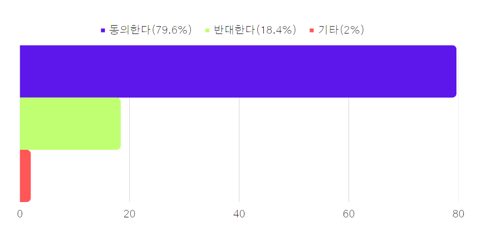 - 참여연대 정치가이드라인에 대해 동의(79.6%), 반대(18.4%)로 나타났습니다.