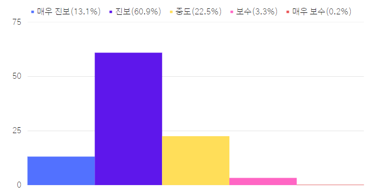 - 회원들은 스스로를 진보(60.9%), 중도(22.5%), 매우 진보(13.1%)로 생각한다고 응답했습니다.