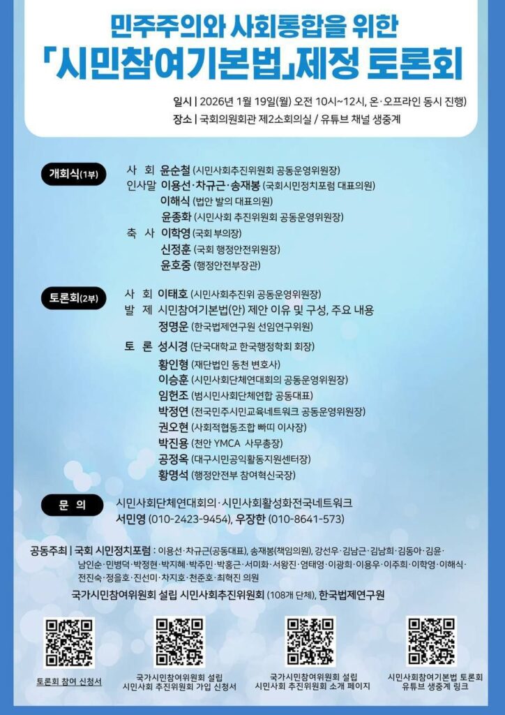 민주주의와 사회통합을 위한 「시민참여기본법」 제정 토론회