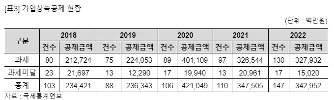 1997년부터 중소기업의 가업승계를 지원하는 가업상속공제제도가 운영되고 있으나 가업상속공제 대상이 되는 중견기업 수에 비해 실제 이용률은 높지 않은 것으로 나타났습니다. 심지어 중견기업 대다수는 가업승계를 고려하지 않는다고 답하였습니다. 이러한 부분을 고려할 때 상속세가 가업승계에 부정적인 영향을 미친다는 근거는 부족합니다.