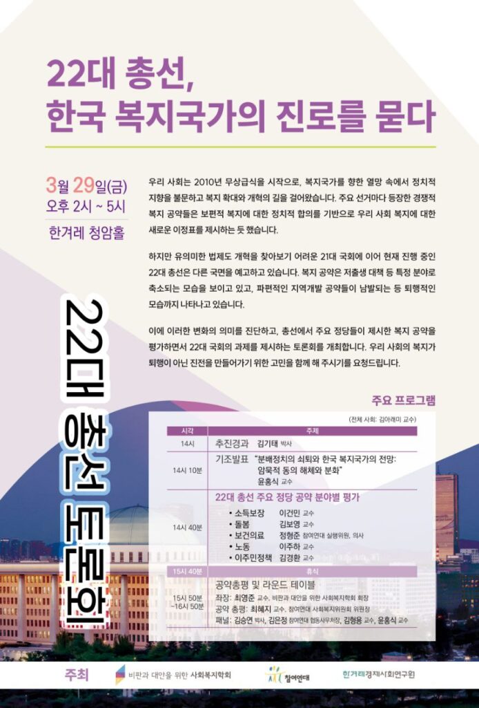 - 제목 : 22대 총선, 한국복지국가의 진로를 묻다