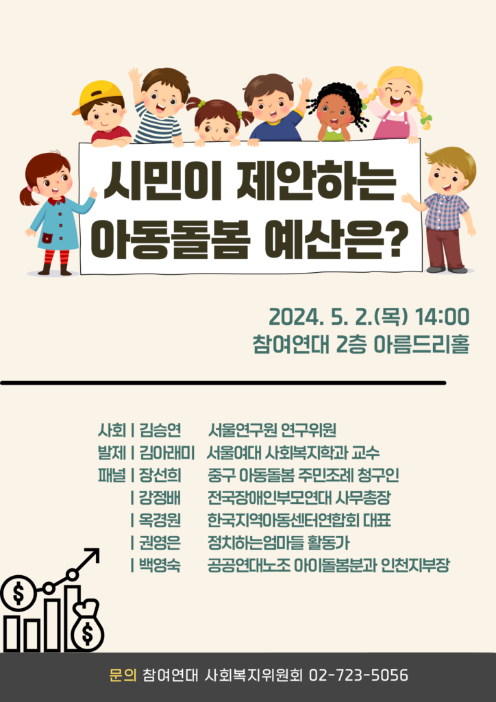 이에 바람직한 아동 돌봄 정책과 예산의 방향에 대해 다양한 주체들이 모여 이야기를 나누고자 합니다.