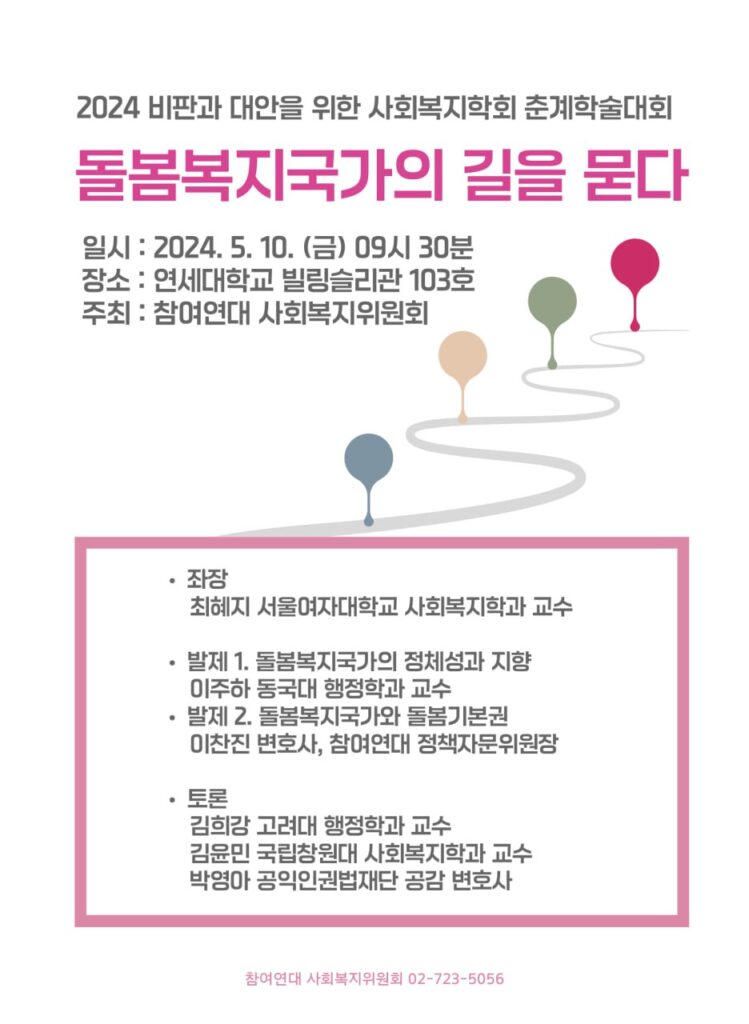 2024.05.10.(금) 오전 9시 30분, 돌봄복지국가의 길을 묻다, 연세대 빌링슬리관 103호